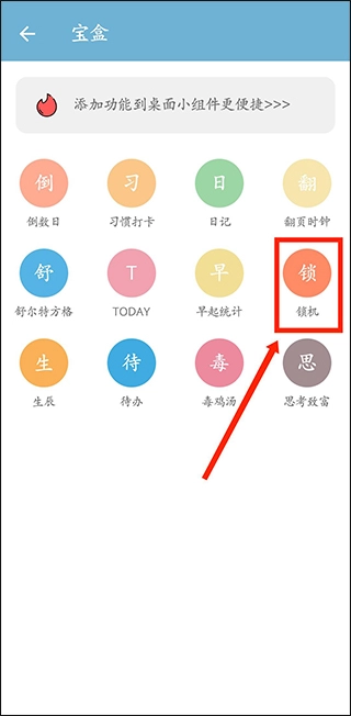 3、在【宝盒】页面中找到【锁机】,点击打开。