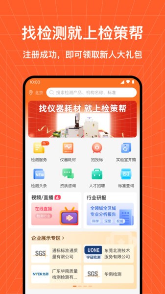 检策帮检测 专为企业量身打造的行业检测服务平台,企业用户可通过平台获取最新行业资讯,找到专业机构完成产品检测,还能选购专业检测器材,享受一站式服务体验,推荐大家使用!