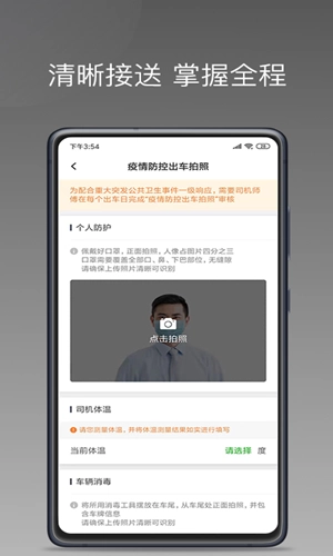 司机在每日驾车前都会对车辆进行消毒,还会把相关的认证图片上传到平台管控中心,以此为乘客的日常出行筑牢安全防线。