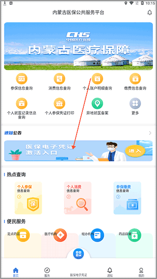 来到页面主页,点击如图地方进行电子医保卡激活。