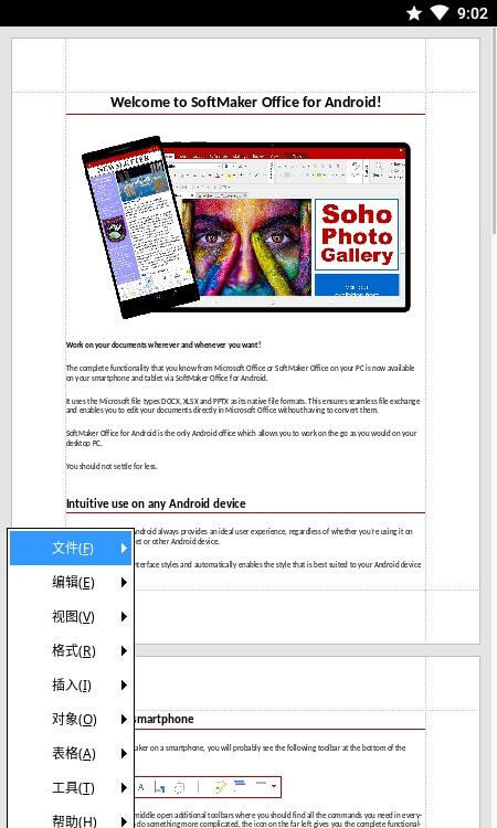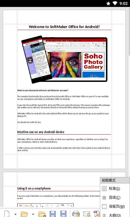 可以免费使用 Android 版 TextMaker 的全部功能。