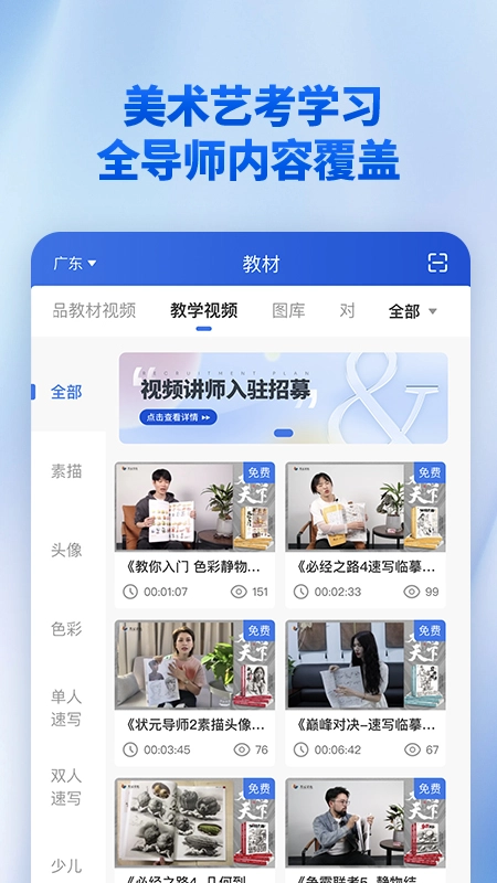 在首页浏览各类艺术课程,依据个人兴趣挑选心仪的课程进行学习。