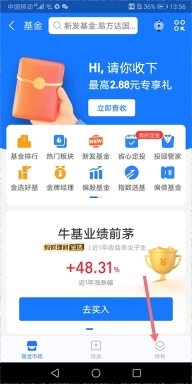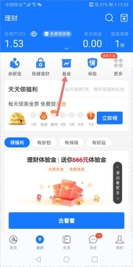 打开支付宝,进入【理财】页面中点击【基金】