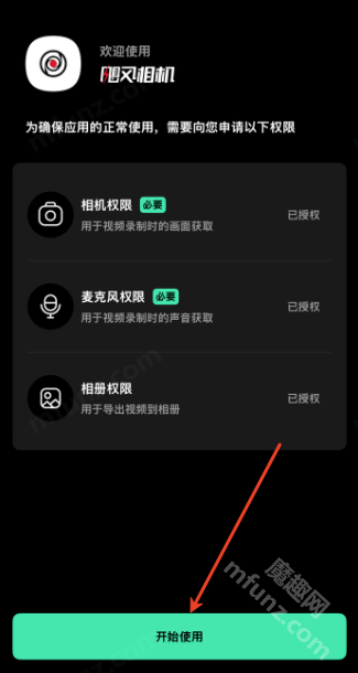 打开飓风相机点击开始使用