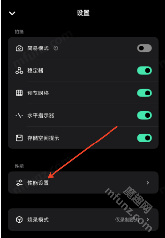在设置中找到性能设置