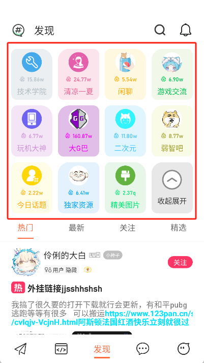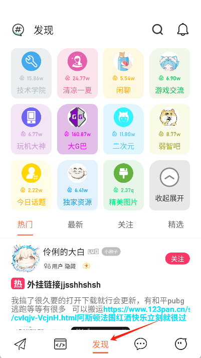 进入论坛的操作步骤如下:在软件界面里找到“发现”板块并点击,即可进入论坛页面。
