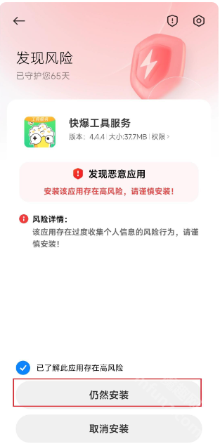 快爆工具服务在部分机型上会被第三方安全检测提示有风险,但实际上它是安全无风险、无病毒的。为了方便爆友们在遇到这类提示时仍能顺利安装,我们准备了详细的安装步骤说明。