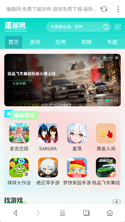 用户首先需要在魔趣网平台下载并安装卡卡浏览器到手机上。
