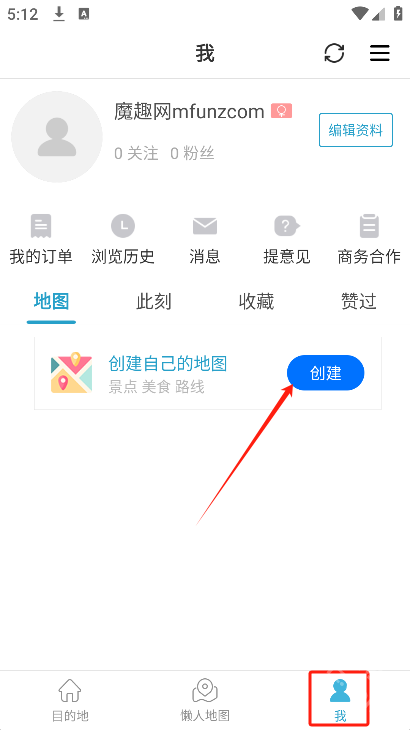 登录十六番旅行后,在底部点击【我】,然后点击创建