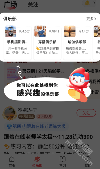 在俱乐部里,你能加入自己感兴趣的圈子,也可以关注感兴趣的老师。