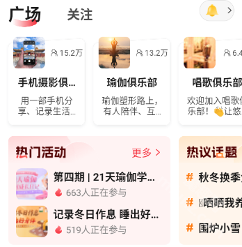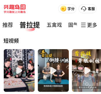 首页设有普拉提、固气活血、太极、手机摄影等栏目,大家可依据个人喜好筛选内容。