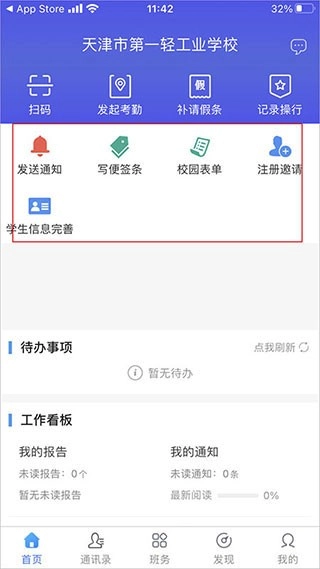 进入软件后,你可以发起考勤、补填请假条以及完善学生信息等操作。
