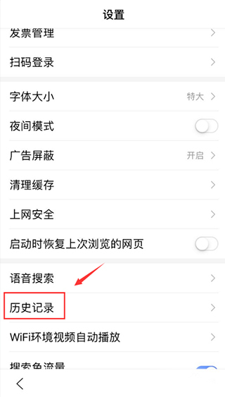 首先打开度娘浏览器,进入到首页之后点开 我的 页面,然后翻到页面最下方打开 设置,找到历史记录;