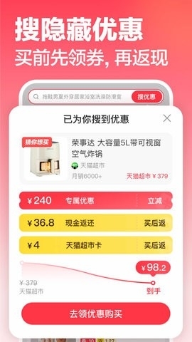 这是一款能专门帮你在网购时省钱的神器,支持淘宝、京东、拼多多、唯品会等多个主流购物平台使用。