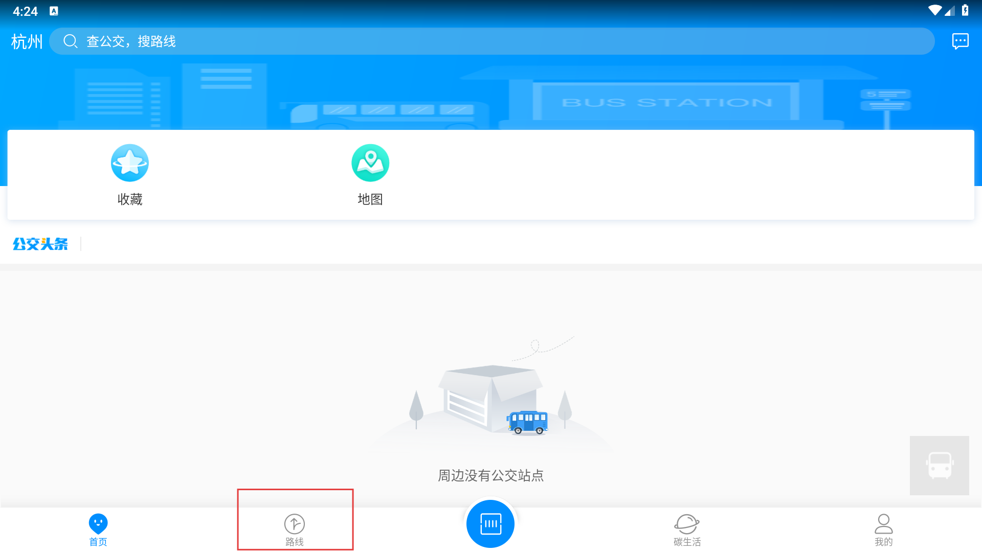 1、在首页点击底部的【路线】功能按钮,即可进入路线规划页面。