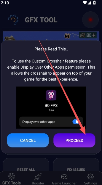 2、若要使用自定义准心功能,需开启“在其他应用上显示”权限。开启该权限后,准心将显示在游戏画面的最顶层,从而确保获得最优体验。