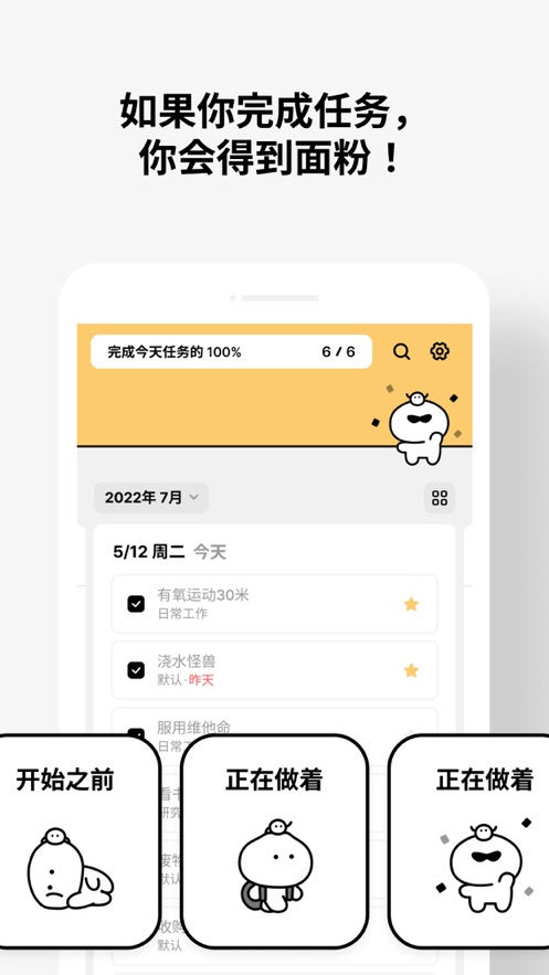 2、通过可爱的角色进步和谚语来激发动力完成待办事项;