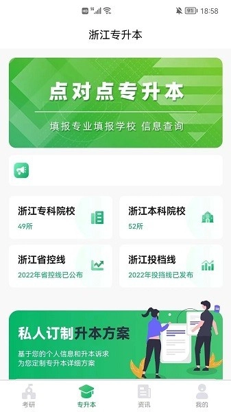 高考板块:支持智能推荐志愿组合,同步更新各大学最新招生章程;专升本板块:重点优化浙江地区专升本数据查询功能,并配备历年真题资源;考研板块:全面收录硕士招生目录,支持专业课资料共享;课程板块:涵盖公共课系统讲解与专业课冲刺课程,支持离线学习。