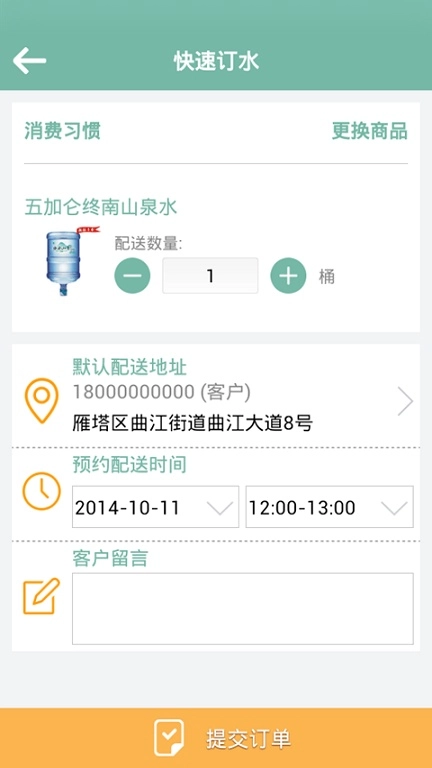 3、极速订水服务:仅需3步即可完成下单流程,同时支持微信支付、支付宝支付以及企业月结等多种支付方式;