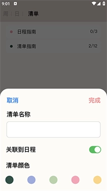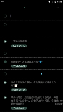 日记:每日一页,支持文字输入;具备“今日完成”卡片功能,可自动记录当天在清单里完成的事项。