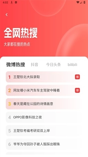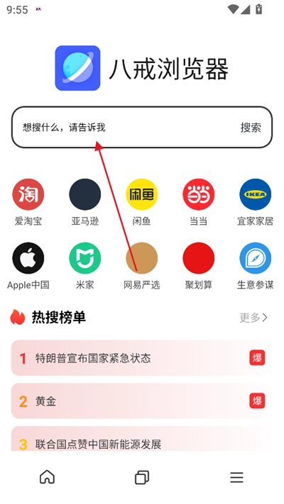 八戒浏览器支持把常用网站添加到主页,用起来更方便;首页下方还会展示实时热搜内容,能让用户及时了解当天的热门话题,像微博、抖音、今日头条和bilibili的热搜都有涵盖,快快来体验一下吧!