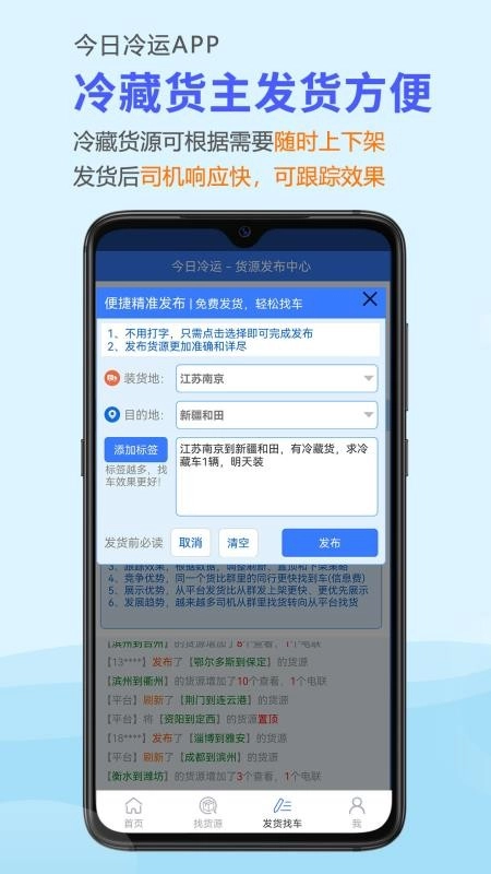 软件内设有发货找车功能,用户能够通过该功能发布冷藏类货源的相关信息。