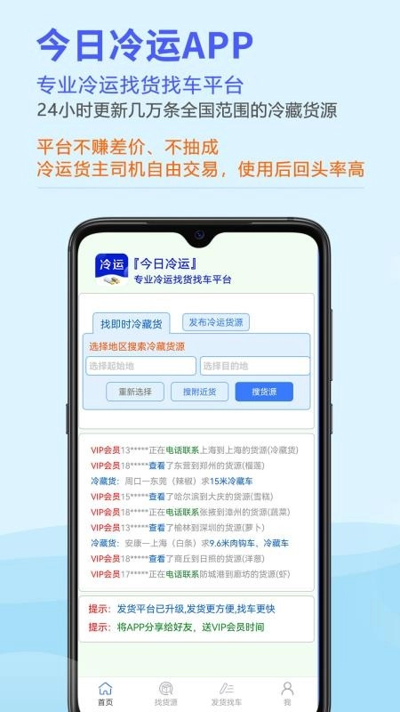 让司机用户在这里查找各类冷藏货源更轻松便捷,助力他们轻松找到心仪的货源承接运输。