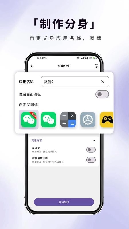 在创建新分身时,你可以自定义应用的名称、图标,还能开启高级选项,这样使用起来会更方便。