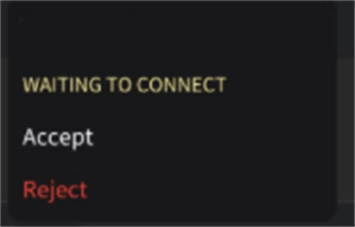 当双方都在线时,主界面的电脑功能区里,好友的标识会显示在自己的设备旁,此时点击“Connet”按钮即可发出连接申请。申请送达后,对方主界面会弹出确认窗口,选择白色的“Accept”按钮表示同意,选择红色的“Reject”按钮则表示拒绝。