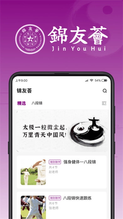 锦友荟是一款非常实用的运动健身类软件,专门为用户开展健身运动而设计,提供了丰富多样的健身内容,能让用户随时满足自身的健身需求。该软件主要聚焦太极、八段锦等传统运动方式,并结合视频形式,用户可以第一时间在平台上边参考边进行健身练习。