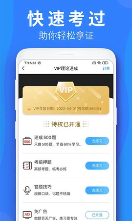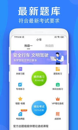 为助力学员更高效地备战并顺利通过驾照考试,无论是考前精准押题、分科目专项练习、交通标志与交警手势的强化记忆,还是2022年驾考新规题库的同步更新及实用答题技巧的分享,都能为学员提供覆盖全流程的备考支持。车学堂作为一款权威的驾考学习平台,由人民交通出版社股份有限公司倾力打造,学员可借助该软件完成系统化的驾驶培训课程学习与多样化的试题练习。此外,应用还特别推出VIP理论速成功能,助力学员实现更高效的学习与备考。车学堂无疑是学员备考驾照的优质之选。