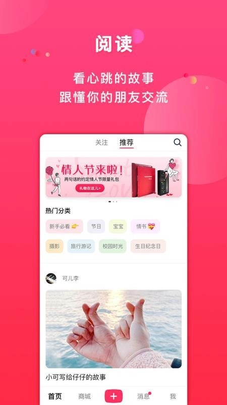 拥有超人气的H5社区,在这里用户可以找到自己喜欢的人,也能让喜欢你的人找到你。社区互动活跃,有粉丝、关注、评论、点赞等功能,每个人都可以成为意见领袖,分享自己的生活、情感和观点。首创炸弹式弹幕,让评论在照片上炸开,带来不一样的体验;还有直播式打赏功能,用户可以将作品发到朋友圈,不仅能收获赞,还可能获得真金白银的礼物,且礼物可提现。