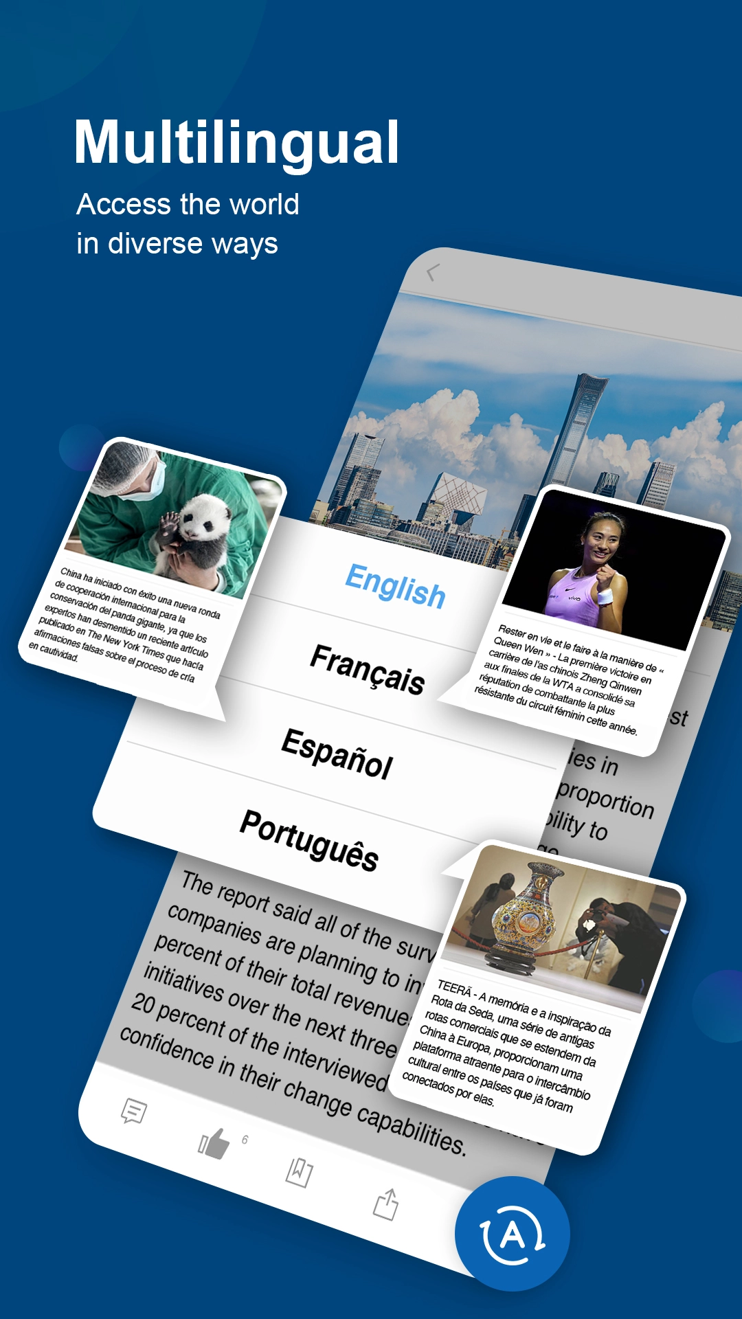 China Daily是一款为用户提供高质量英语新闻和资讯服务的移动客户端。它不仅涵盖了国际和国内的突发新闻,还提供了用户自主选择的多种版块,满足不同用户的需求。通过这款应用获取最新的新闻动态、实用信息以及丰富的学习资源,帮助他们更好地了解世界和提升语言能力。