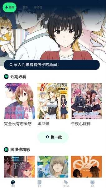 继续下拉页面,可以发现各种类型的国产漫画推荐。