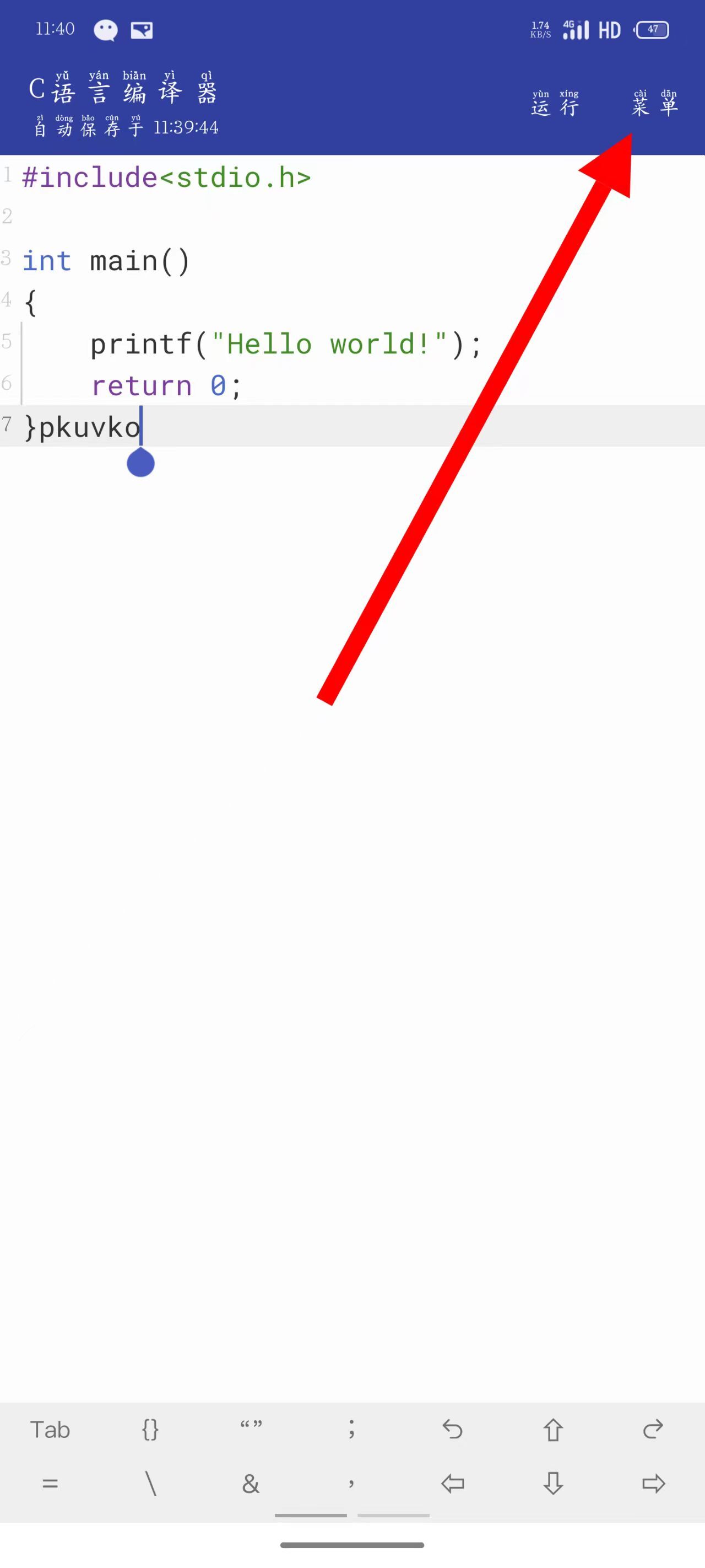 1、打开c语言编译器,点击右上角菜单。
