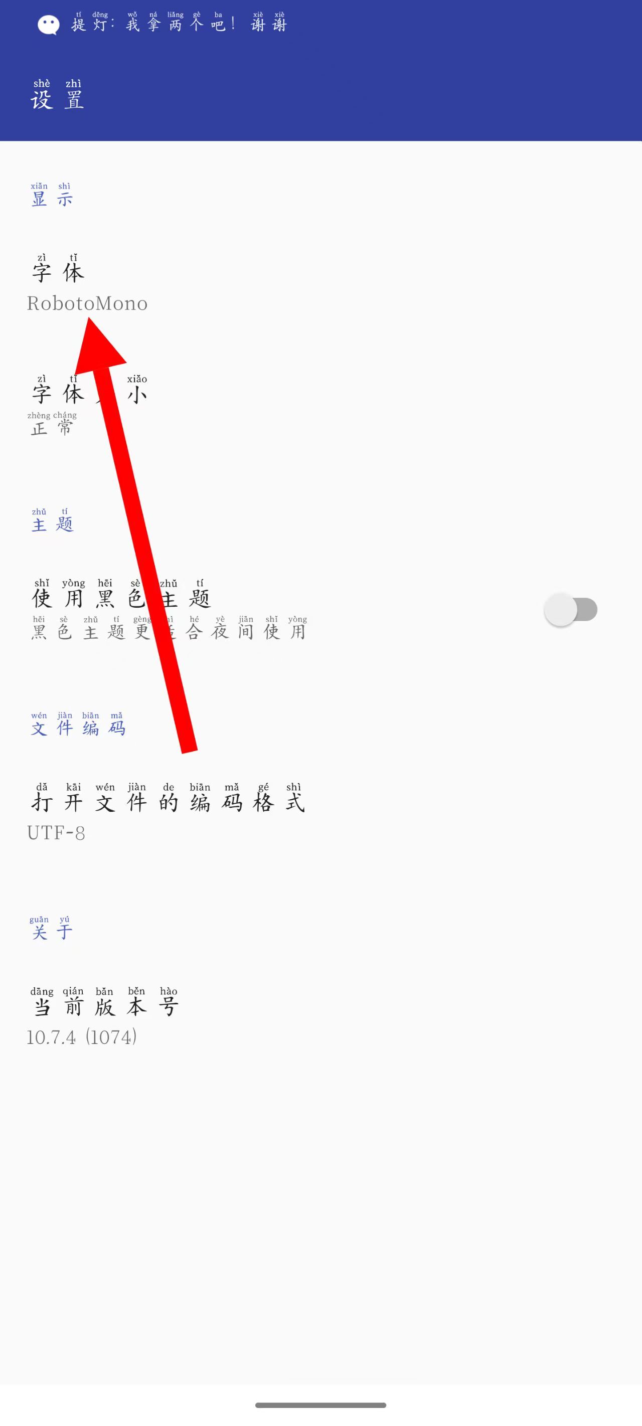 3、在设置的页面,点击字体。