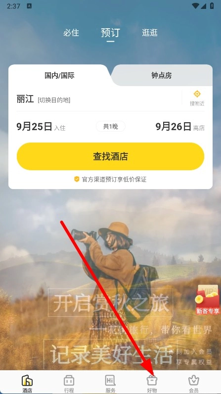打开,点击底部导航栏中的好物选项。