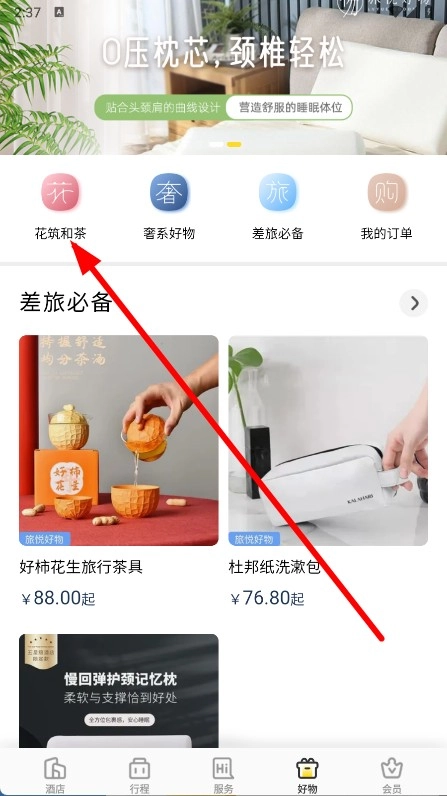 在好物页面,点击花筑和茶分类。
