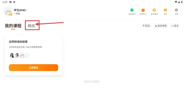 1、打开教育类,点击精练选项,进入精练板块页面。