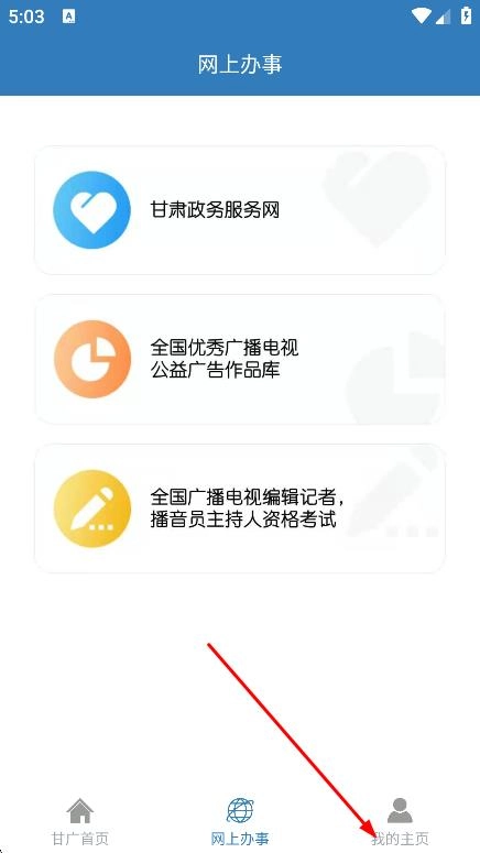 在网上办事页面,点击“我的主页”选项,即可跳转至登录页面。