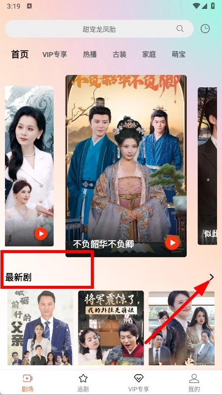 打开后,在首页找到“最新剧”板块,点击该板块右侧的展开箭头。