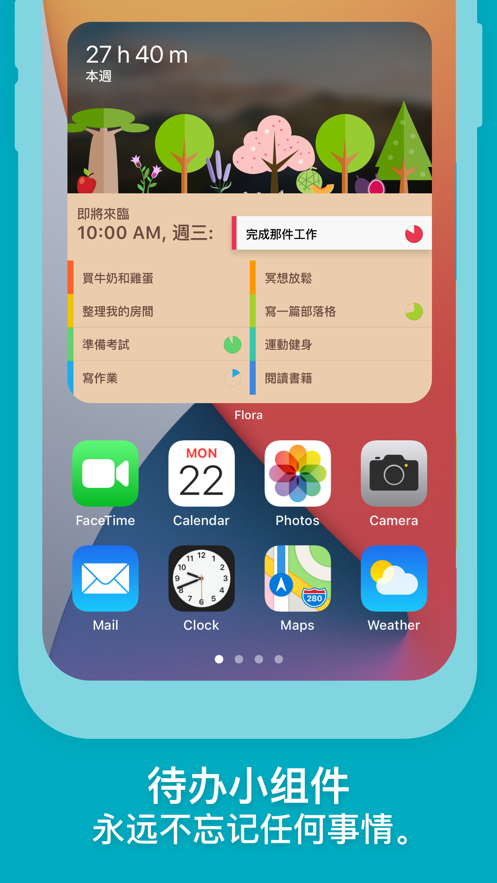 1、Flora 是一种全新的方法来帮助你远离手机、清空待办事项、以及养成生活好习惯。