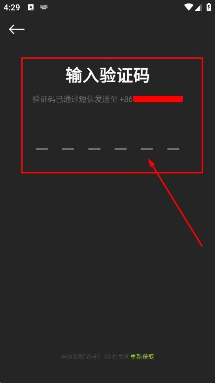 3、在手机号输入页面填写手机号后,即可进入验证码输入页面。