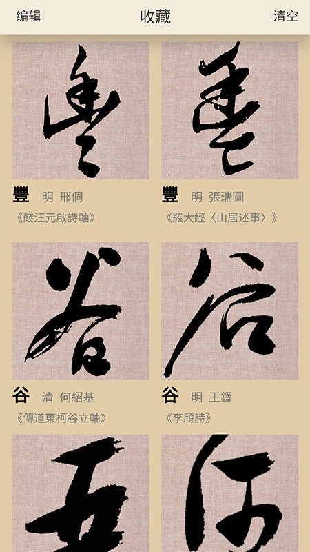 收藏管理内容:遇到心仪的字帖或碑帖时,点击页面“收藏”按钮,将其添加到个人收藏夹,后续可在收藏夹中快速找到,方便反复学习与练习。