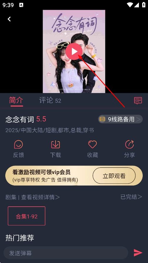 3、随后在详情页面,点击播放按钮,开始播放短剧。
