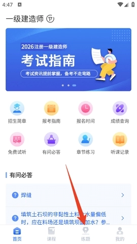 进入软件首页之后,点击下方的“练题”。