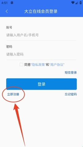 然后在登录页点击“立即注册”。
