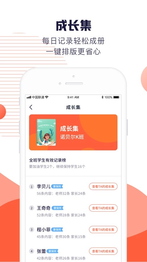 所有记录会自动整理到成长集里,让老师不用再费力制作纸质的成长档案啦
