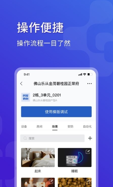 2、支持通过B端账号进行登录,创建房间、场景、自动化、安防等功能。