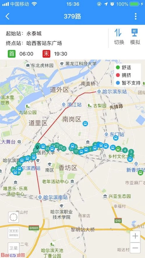 1、市民下载软件后,能够随时通过手机查看哈尔滨市内公交车的实时行驶位置和到站情况。